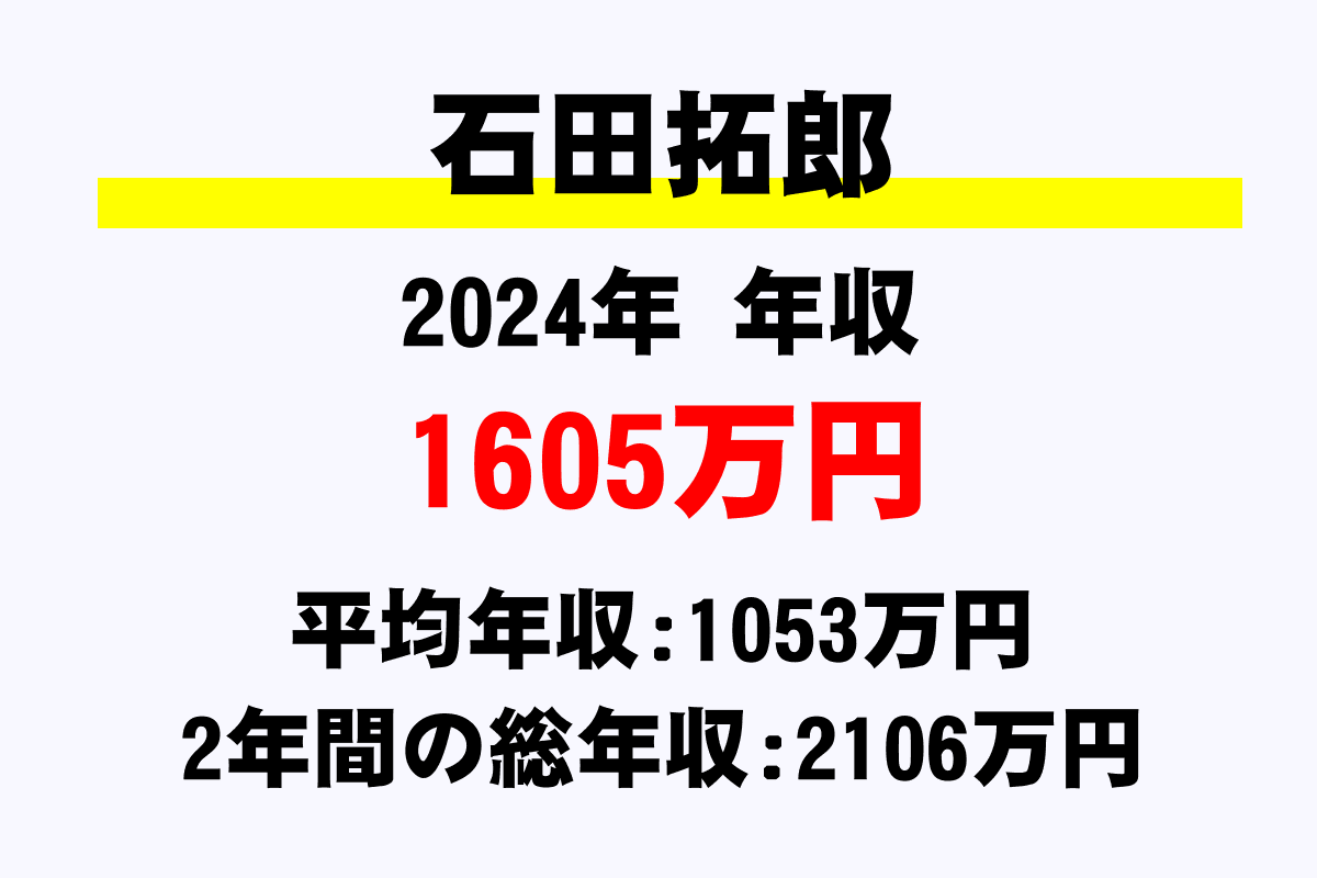 石田拓郎騎手の2年間のトータル年収は2106万円、平均年収は1053万円でした。