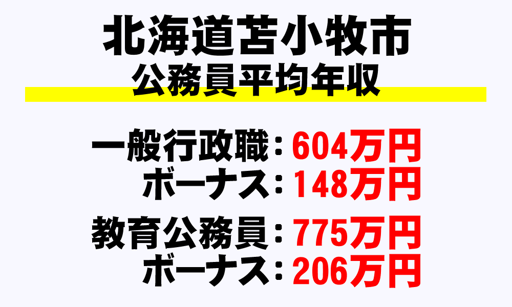 2024年の苫小牧市(北海道)の教育公務員の平均年収は775万4500円でした。