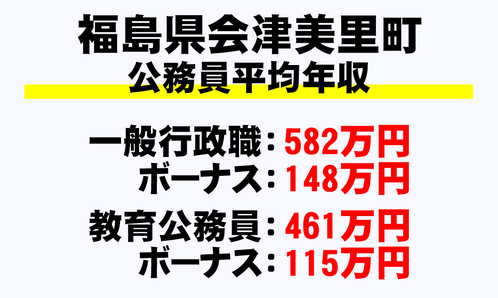 2024年の会津美里町(福島県)の地方公務員の平均年収は582万9856円でした。